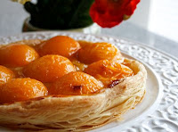 Preheat the oven to 375 degrees F. Wash and dry the apricots, then cut in half through the stem and remove the pits. Lightly roll out the dough large enough that you can cut a 10 inch circle. I find cutting around a dinner plate works well for me. Lightly grease a baking sheet and place the cut pastry on it. Heat the jam in the microwave for 20 seconds to liquify it and spread three tablespoons of the jam over the pastry circle, leaving a border of 1 inch. Place the apricots cut side down on the pastry, and brush them with the remaining jam. Sprinkle the sugar on the apricots and then bake for about 20 to 25 minutes. The pastry should be puffed and light brown and the apricots lightly caramelized. If desired for more caramelization you can place the tart under the broiler for a minute or two. Serve warm.